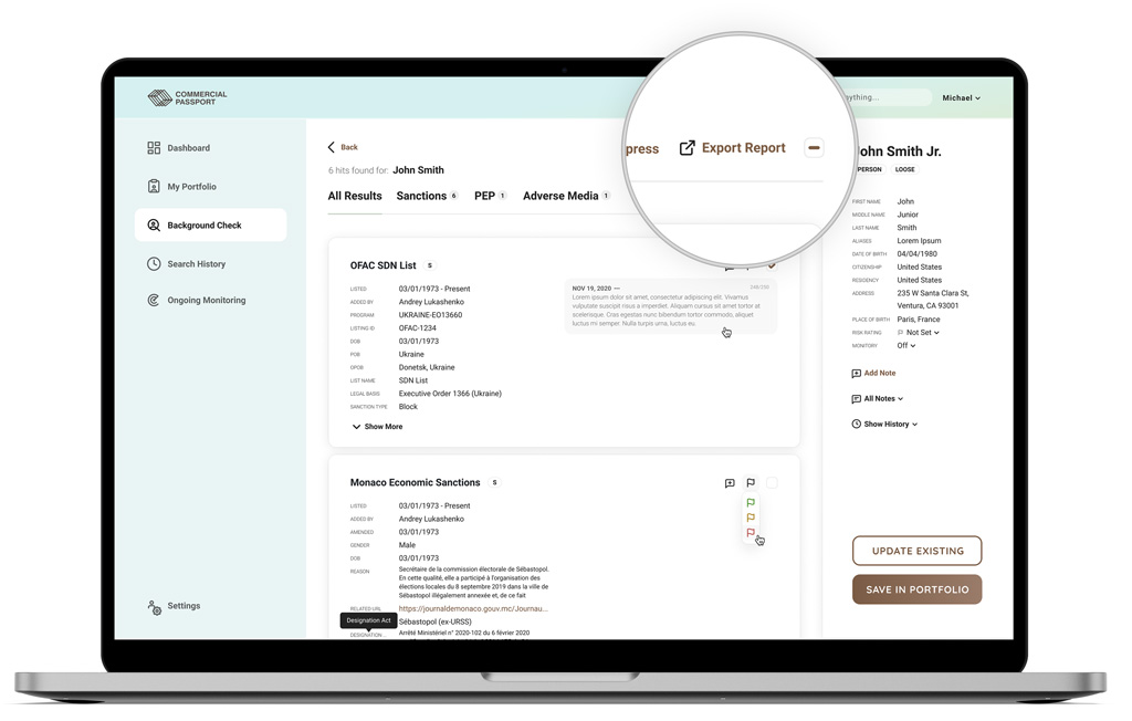 Commercial Passport helps in customer identification related to financial crimes and money laundering prevention. This complex fintech web app provides a KYC solution with reviewing, documenting, and analyzing data for legal entities through an efficient digital master record format. The major challenge in this project was achieving a coherent interface – despite the variable data formats/categories, and various data sources.